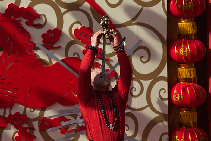 廠甸廟會天橋藝人表演吞寶劍,這活兒我勸您別模仿。(圖片來源:東方IC)