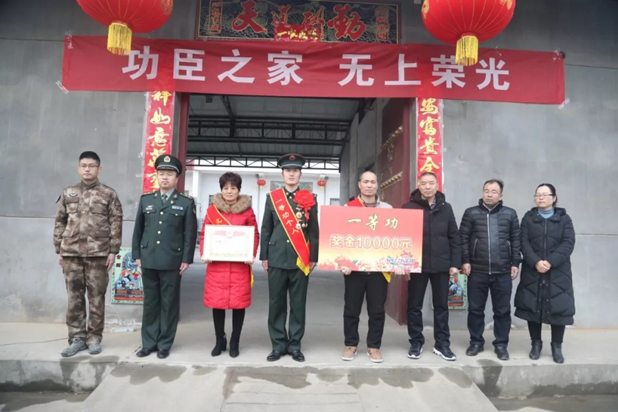 送喜報干部在一等功臣張德云家進行慰問
