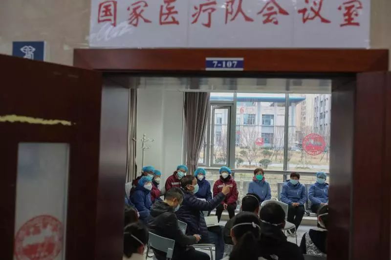 房間四周,分別坐著四支隊伍——當前駐防的人民醫院,以及前來支援的三支醫療隊,他們分別來自陜西、山東、上海。這支上海醫療隊共136人,其中30名醫生、100名護士、6名行政人員,他們全部來自于復旦大學附屬中山醫院。