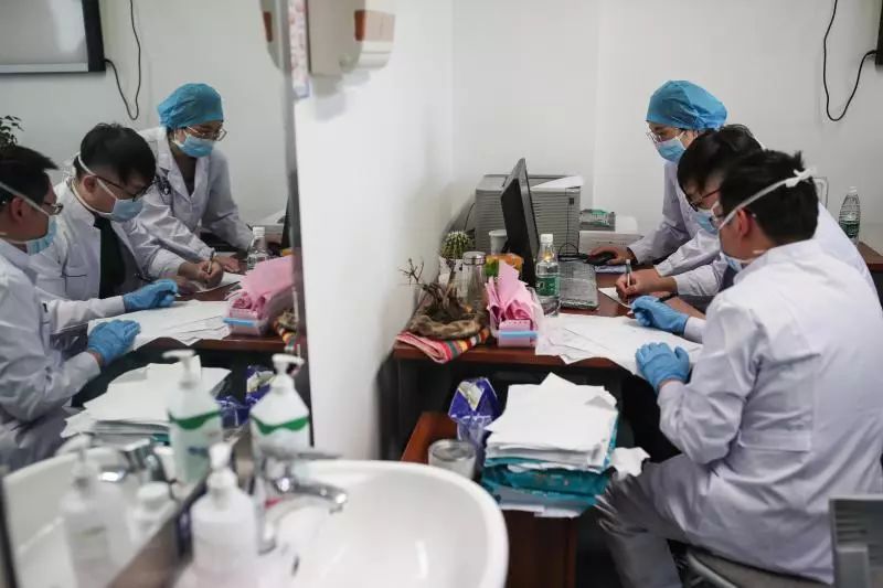8日傍晚,武漢天氣陰冷,一陣陣寒風穿過敞開的窗戶,吹進人民醫院7號樓一個房間里。這個房間以前也許是個會議室,但此刻,除了沿墻壁擺滿的椅子外,沒有任何陳設。換防會議就在這個空蕩蕩的房間里舉行。