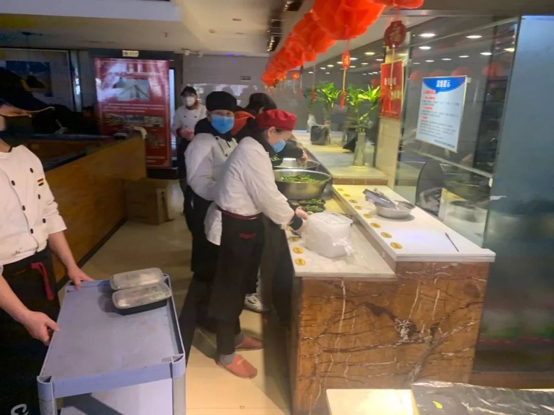就餐問題解決了,但我又發(fā)現(xiàn)另一個(gè)新情況:對接餐館的負(fù)荷太大了,產(chǎn)能也已經(jīng)到頂。我開始設(shè)想,在現(xiàn)有許多資源傾斜的情況下,我們能不能有一家專門的供餐餐廳。我很快開始落地實(shí)施,一天跑20多家餐廳談合作,一家家地問能不能免費(fèi)或低價(jià)給我們用場地和員工。很快,金滏山餐廳的老板,與我們目標(biāo)一致,一拍即合。