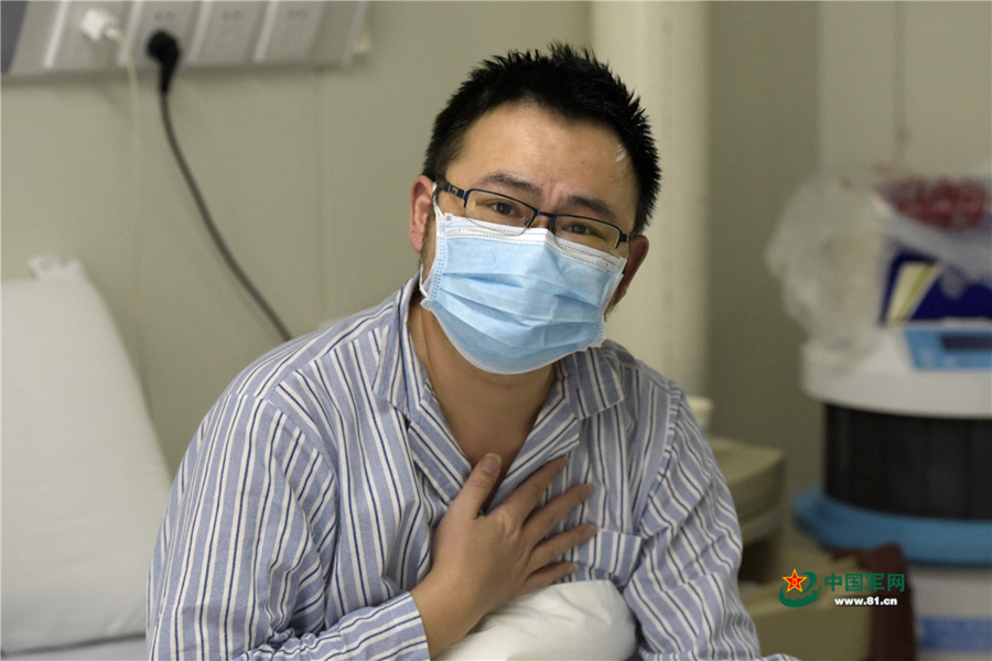 萬先生說他對醫(yī)護人員的感激發(fā)自內(nèi)心。中國軍網(wǎng)記者范顯海 攝