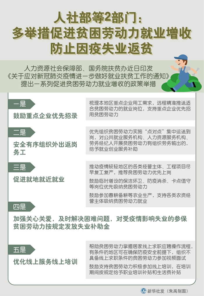 新華社北京2月25日電(記者王優玲)人力資源社會保障部、國務院扶貧辦近日印發《關于應對新冠肺炎疫情進一步做好就業扶貧工作的通知》,提出一系列促進貧困勞動力就業增收的政策舉措。