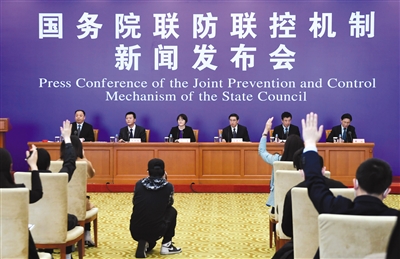 3月7日,國務院聯(lián)防聯(lián)控機制新聞發(fā)布會現(xiàn)場,介紹農(nóng)民工返崗復工服務保障工作部署。新京報記者 吳寧 攝