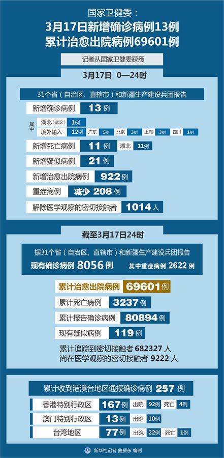 國家衛健委:3月17日新增確診病例13例 累計治愈出院病例69601例-新華網
