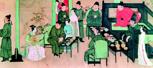 宋代,合餐進一步定型,這與市民經濟的發達不無關系。兩宋的都城,飲食行當極其豐富,菜品繁密、品相細膩。各品類的酒樓、食肆也是不可勝數,常常是食客滿盈。