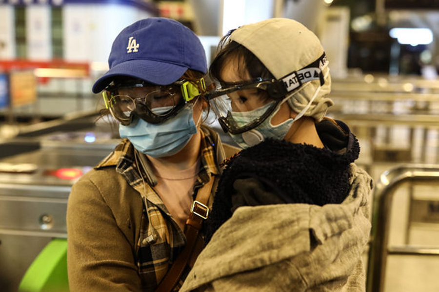3月28日,武漢火車站,一名小女孩和媽媽準(zhǔn)備乘坐地鐵回家。記者 趙迪/攝
