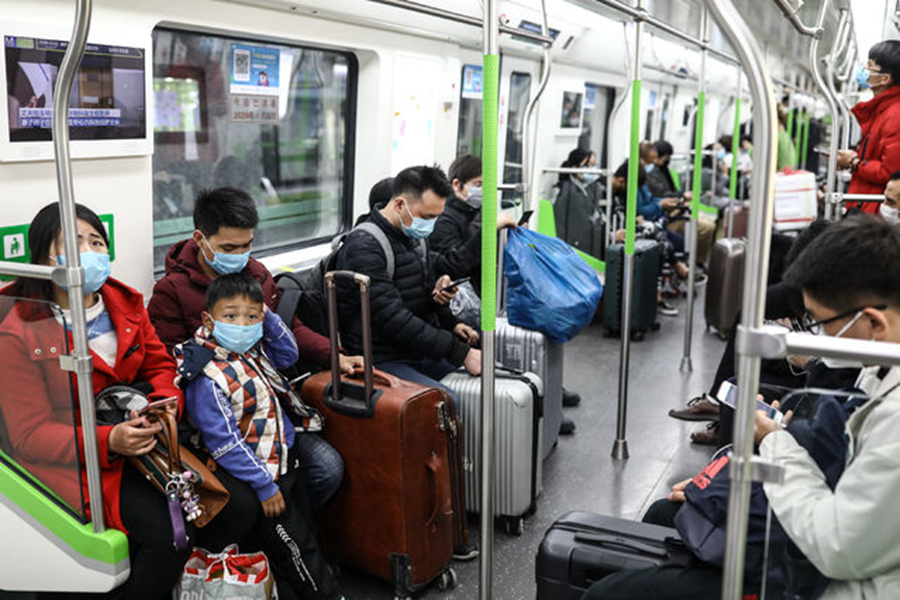 3月28日,武漢地鐵4號(hào)線,5歲的劉志皓和父母乘坐地鐵返回家中。他的父親在一家互聯(lián)網(wǎng)公司工作。記者 趙迪/攝