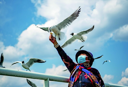 79歲的退休老人張恒禮,在新聞里看到今年有專人投喂紅嘴鷗,坦言心里踏實(shí)了許多。