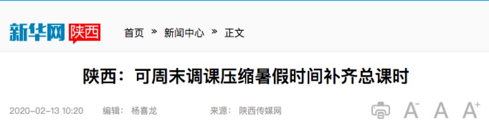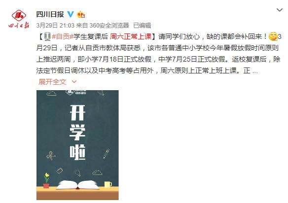 今年2月,四川就曾下發通知明確:中小學因延遲開學耽誤的教學時間,可通過調整周末和暑期等方式補齊。
