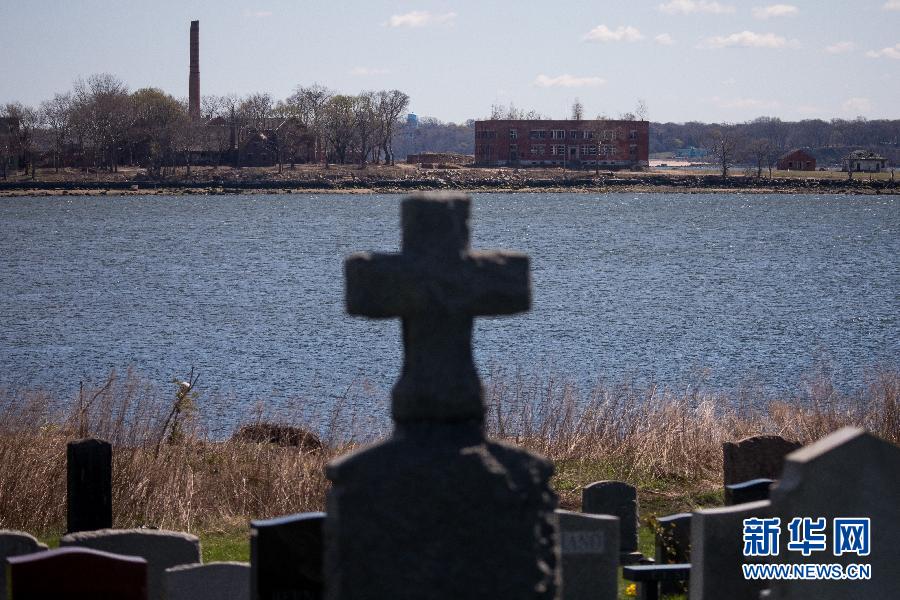這是4月11日從美國紐約布朗克斯區拍攝的用來埋葬部分新冠死亡患者的哈特島。 新華社發(郭克攝)