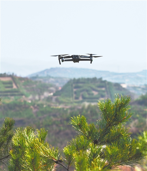 無(wú)人機(jī)在山西太原杏花嶺區(qū)牛駝生態(tài)林區(qū)護(hù)林防火巡查。 新華社發(fā)