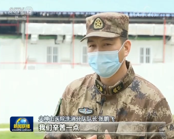 火神山醫(yī)院洗消分隊(duì)隊(duì)長(zhǎng) 張鵬飛:我們要保證醫(yī)務(wù)人員安全,我們要保證病區(qū)安全。我們認(rèn)真一點(diǎn),我們負(fù)責(zé)一點(diǎn),我們辛苦一點(diǎn),他們就會(huì)少一絲隱患。