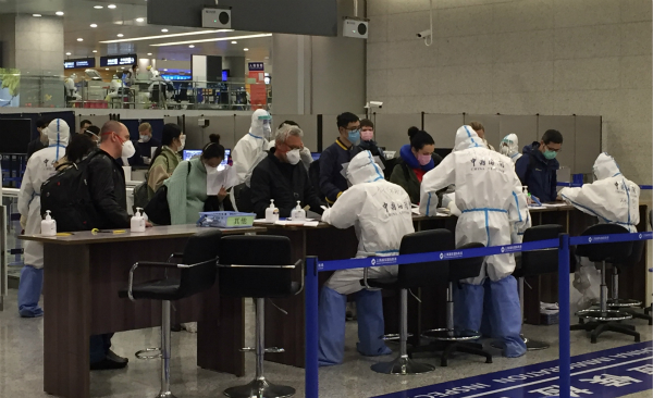 海關關員在上海浦東國際機場對入境旅客進行流行病學調查。新華社發(吳宇 攝)