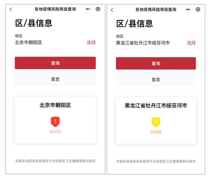 記者了解到,為助力疫情防控,國(guó)家政務(wù)服務(wù)平臺(tái)聯(lián)合國(guó)家衛(wèi)生健康委推出的“疫情風(fēng)險(xiǎn)等級(jí)查詢”服務(wù),可以為公眾提供最新的疫情等級(jí)信息查詢服務(wù)。用戶只需輸入需查詢的目的地,就能一鍵查詢?cè)摰匾咔轱L(fēng)險(xiǎn)情況,并能夠具體查詢到各地區(qū)、縣一級(jí)的風(fēng)險(xiǎn)等級(jí),為復(fù)工復(fù)產(chǎn)、人員流動(dòng)提供實(shí)時(shí)、權(quán)威的信息參考。目前,數(shù)據(jù)在不斷更新完善,能夠?qū)崿F(xiàn)動(dòng)態(tài)更新。