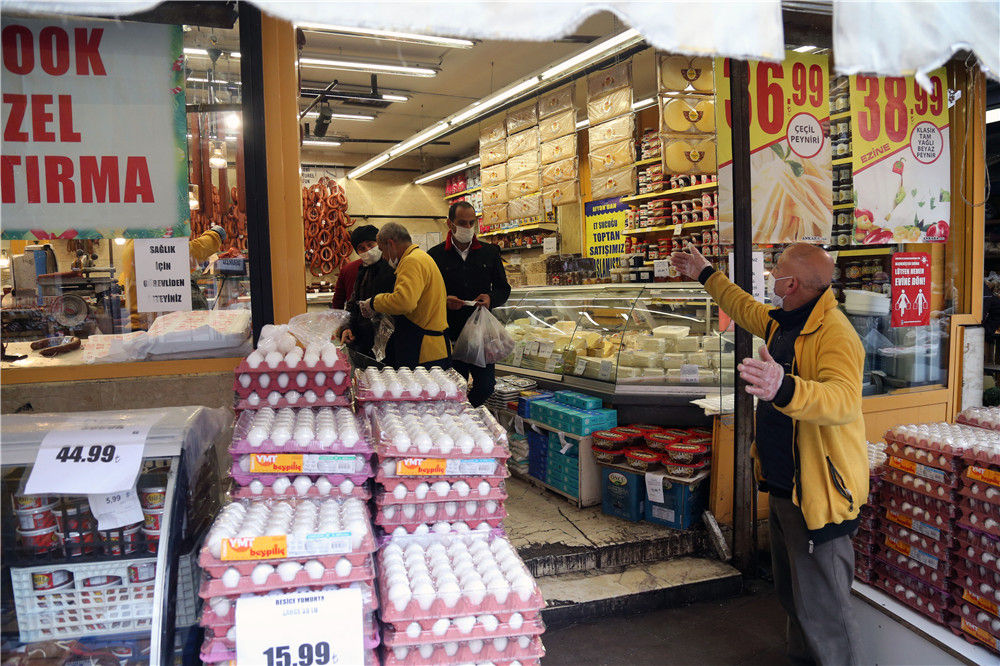 4月22日,安卡拉市民在購物,幾乎都戴了口罩。新華社發(穆斯塔法·卡亞攝)