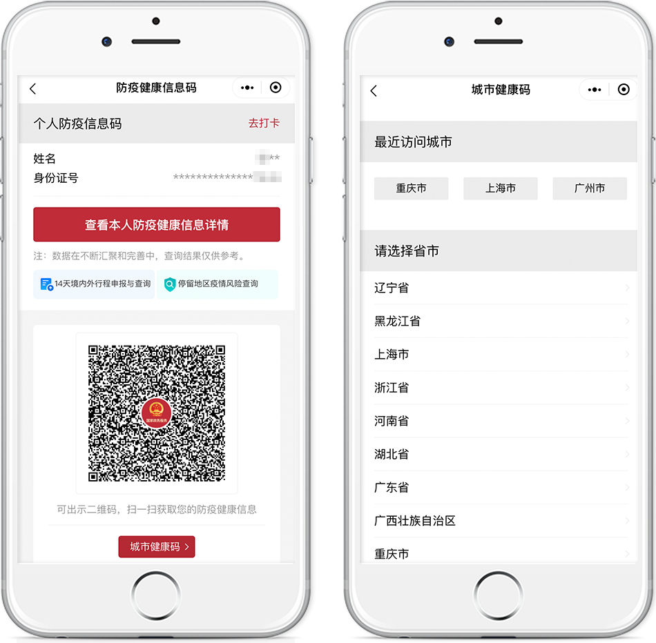 “防疫健康信息碼”為你的跨省出行保駕護航,關(guān)聯(lián)全國31個省(區(qū)、市)及新疆生產(chǎn)建設(shè)兵團防疫“健康碼”信息,實現(xiàn)了信息共享和互通互認(rèn),全國絕大部分地區(qū)可“一碼通行”。