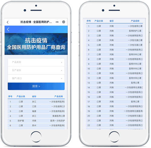 在頁面輸入對應(yīng)信息,即可查詢到有相關(guān)資質(zhì)的廠商名單。再拿出你的防護用品對照注冊證編號等信息是否準(zhǔn)確無誤,凡未經(jīng)藥監(jiān)局系統(tǒng)批準(zhǔn)的廠商產(chǎn)品,都不具備醫(yī)用資質(zhì)和效果。