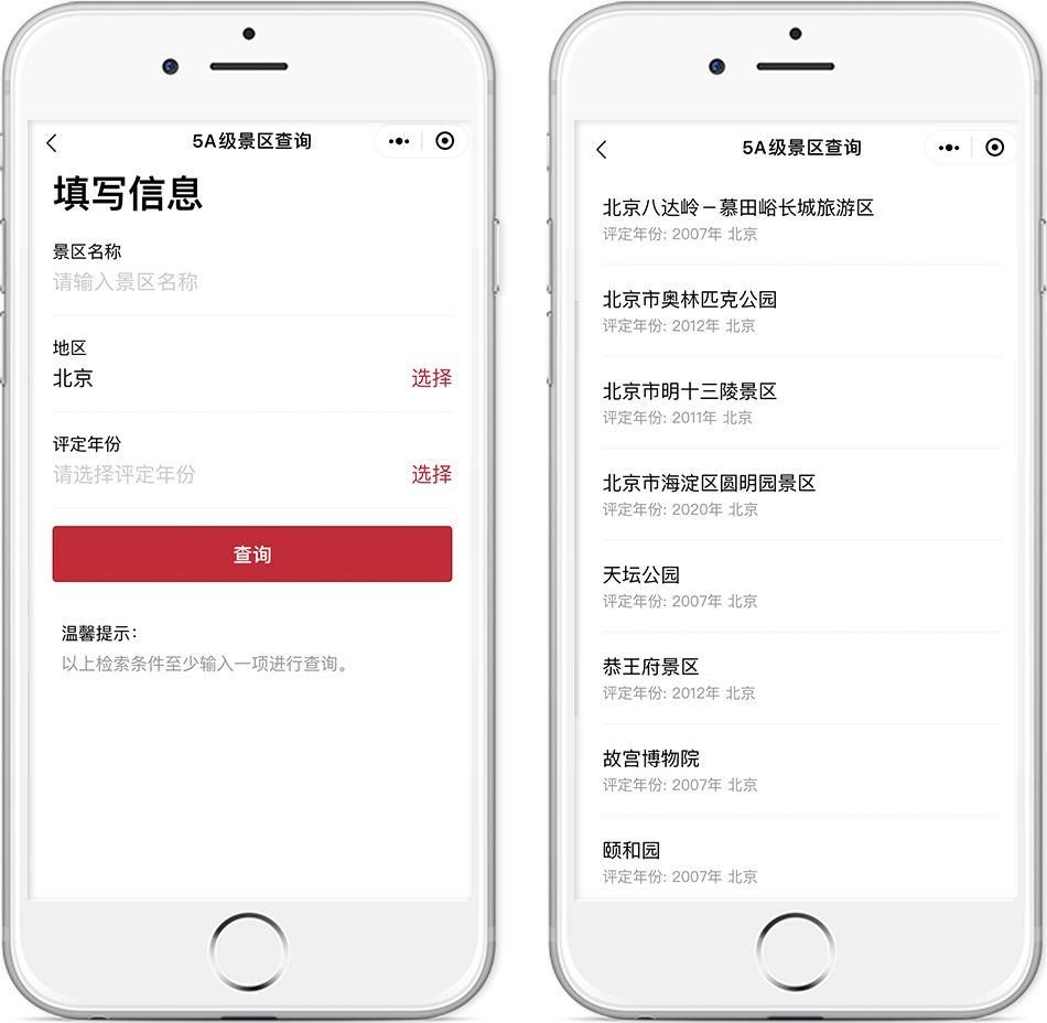 進入服務(wù)后,只需選擇出行地區(qū),即可查詢該地區(qū)所有5A級景區(qū),方便大家快速查找熱門景點,為你的出行提供參考。