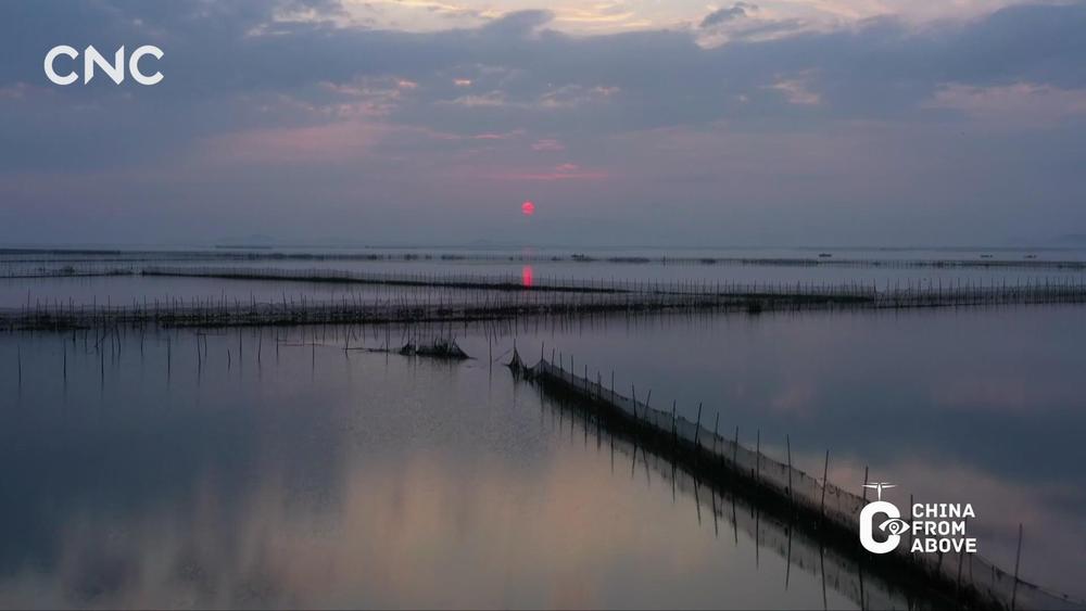 東山島地處海峽西岸,是福建省第二大海島。天晴時(shí),從空中鳥瞰,海藍(lán)而透、天凈而空,整個(gè)海面就像一面鏡子,映著晚霞落日,恰似一幅徐徐展開的水墨畫。偶?xì)w的漁船有時(shí)打破寧靜,讓水墨畫瞬間變幻多姿。