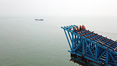 4月25日,早晨6點多,拼裝工張志君帶著徒弟來到中交一航局西人工島施工段,想趁著早上還算涼爽的天氣迅速開工。