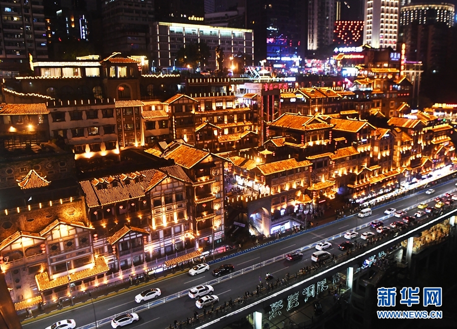 這是5月3日晚拍攝的重慶洪崖洞景區。 新華社記者王全超攝