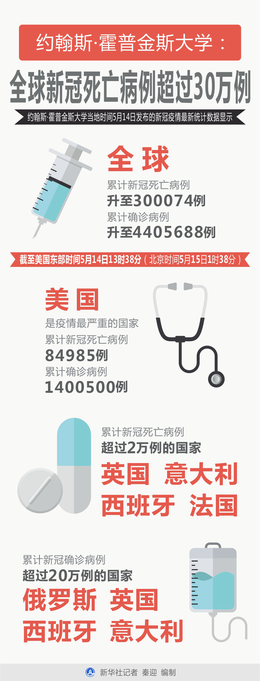 新華社紐約5月14日電 美國約翰斯·霍普金斯大學(xué)14日發(fā)布的新冠疫情最新統(tǒng)計(jì)數(shù)據(jù)顯示,全球累計(jì)新冠死亡病例超過30萬例。