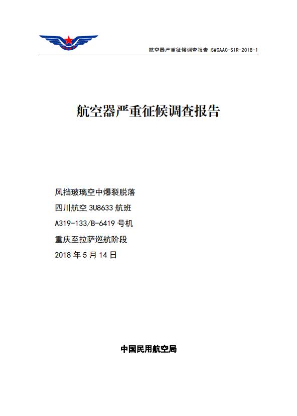 6月2日,中國民用航空安全信息系統(tǒng)發(fā)布2018年5月14日川航A319-100/B-6419號機執(zhí)行3U8633重慶至拉薩航班風擋玻璃空中爆裂脫落事件的調查報告。