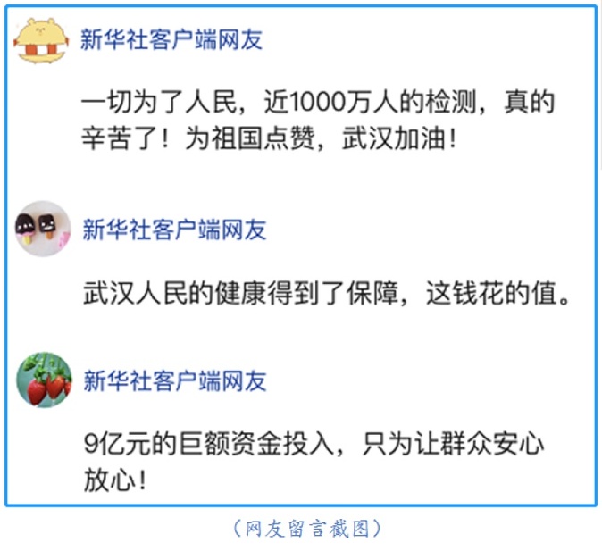同樣在武漢,5月14日以來,近990萬人參加了政府組織的集中核酸檢測,總支出大約9億元。