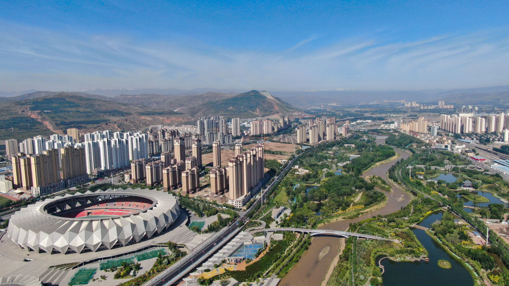 這是6月5日拍攝的西寧市景觀(無人機照片)。新華社記者 張龍 攝