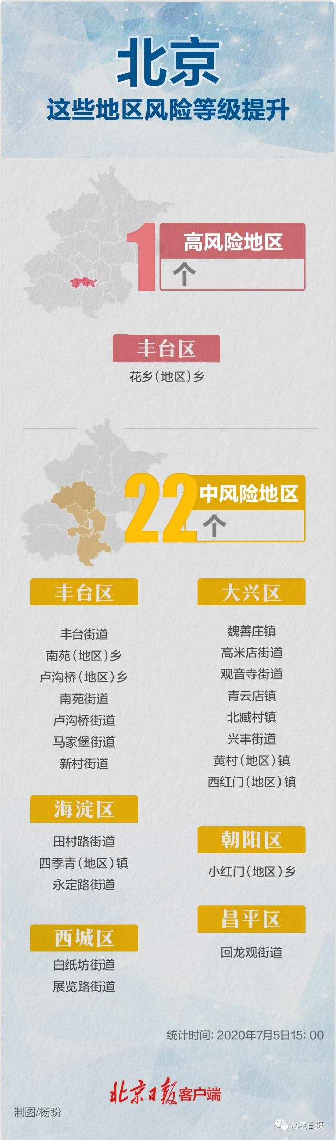 截至目前,本市有22個(gè)中風(fēng)險(xiǎn)地區(qū),涉及豐臺(tái)區(qū)、大興區(qū)、海淀區(qū)、西城區(qū)、朝陽(yáng)區(qū)、昌平區(qū)6個(gè)區(qū);另有1個(gè)高風(fēng)險(xiǎn)地區(qū),是豐臺(tái)區(qū)花鄉(xiāng)(地區(qū))鄉(xiāng)。