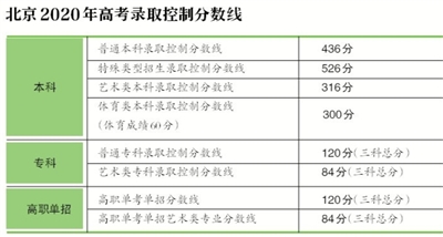 北京市2020年高考成績和各批次錄取最低控制分數線出爐。700分以上考生80人,600分至699分區間共9142人。本科批次,普通本科錄取控制分數線436分,達到本科普通批錄取分數線的考生共37397人。7月27日8時起至7月31日,考生可進行志愿填報,錄取工作8月6日至8月30日進行。