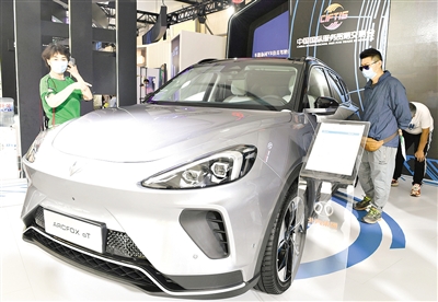 9月5日,觀眾在服貿會5G通信服務專題展區參觀一款5G智能汽車。記者 張晨霖 攝