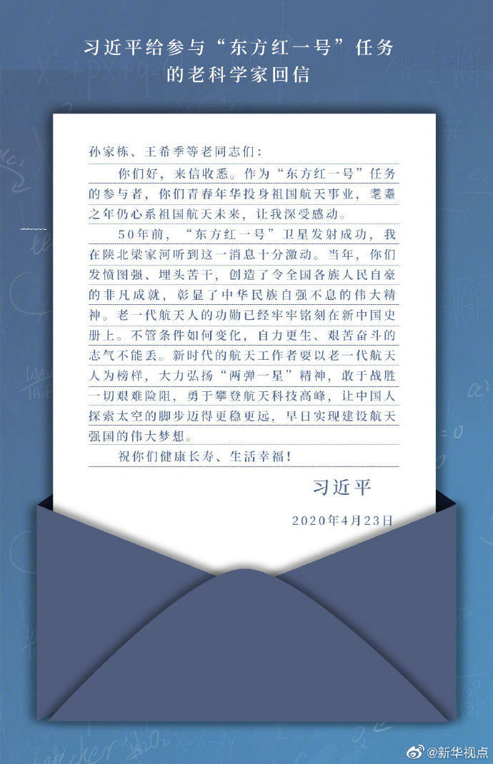 “敢于戰勝一切艱難險阻”——今年4月,習近平給參與“東方紅一號”任務的老科學家回信時這樣寫道。