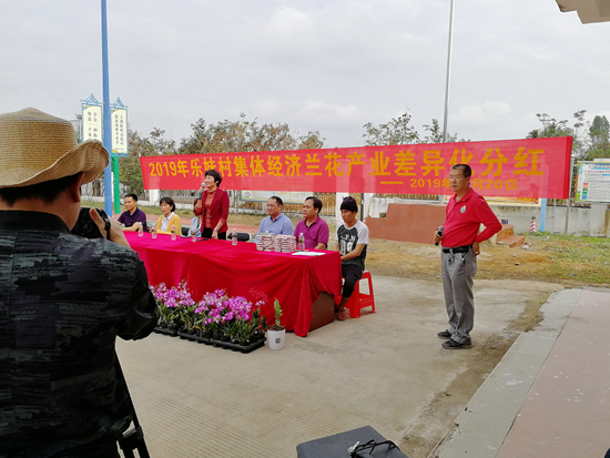 和湖南的周老板商談將樂(lè)妹村的蘭花批發(fā)到湖南的合作意向。