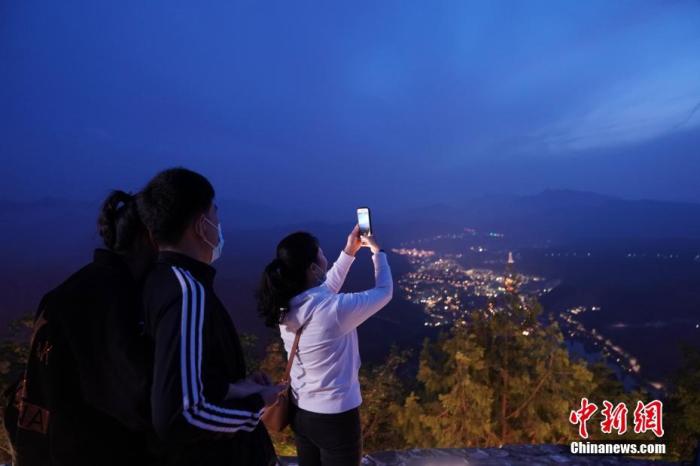 資料圖:游客在北京古北水鎮景區司馬臺長城夜游。 記者 蘇丹 攝
