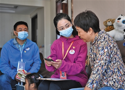 “您好,我們是奧運村街道國奧村社區第七次全國人口普查指導員杜慧婧和普查員婁洪勇,這是我們的工作證。”10月17日上午,在國奧村社區一戶居民家門口,普查員用標準的“七人普”開場白“敲”開了住戶的家門。