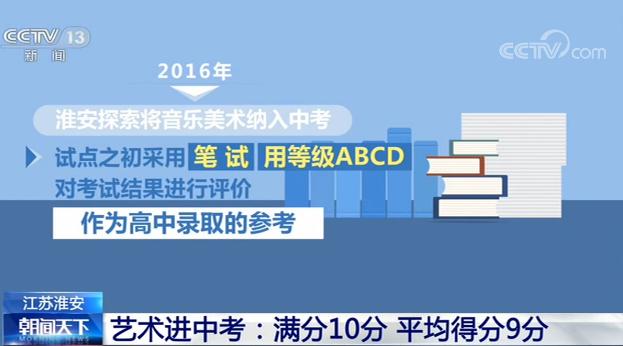 2016年,淮安探索將音樂美術(shù)納入中考,試點(diǎn)之初采用筆試、用等級ABCD對考試結(jié)果進(jìn)行評價(jià),作為高中錄取的參考。2018年,改革進(jìn)一步深化,音樂、美術(shù)各以滿分5分分值計(jì)入中考總分,共十分,考核內(nèi)容主要是音樂、美術(shù)基本知識和基本素養(yǎng),考試方式由筆試調(diào)整為人機(jī)對話考核,不再局限在基本知識,而是注重考察學(xué)生對音樂和美術(shù)作品等欣賞辨析能力。