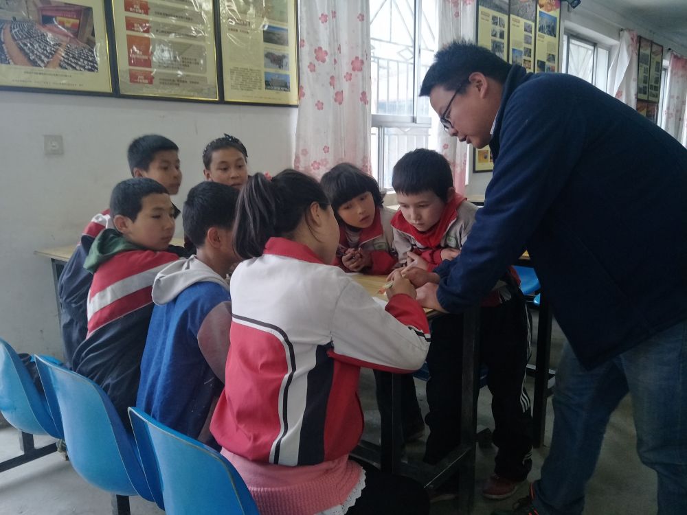 2017年4月,呼延瑋輔導蘭干村的孩子們學習語文。(采訪對象供圖)