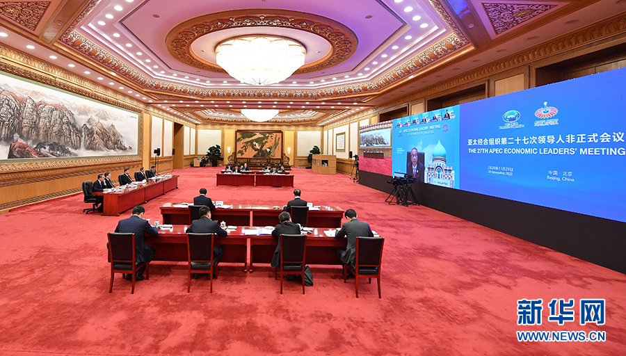 11月20日晚,國家主席習(xí)近平在北京以視頻方式出席亞太經(jīng)合組織第二十七次領(lǐng)導(dǎo)人非正式會議并發(fā)表重要講話。 新華社記者 王曄 攝