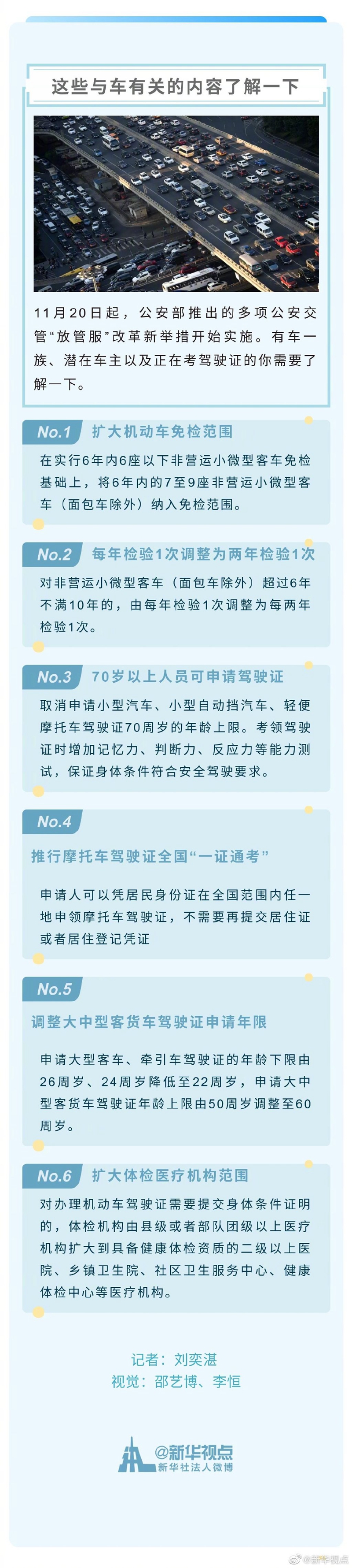 11月20日起,公安部推出的多項(xiàng)公安交管“放管服”改革新舉措開(kāi)始實(shí)施。有車一族、潛在車主以及正在考駕駛證的你需要了解一下。