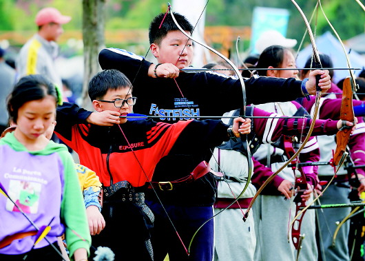 圖2:10月25日,小朋友在2020南京體育嘉年華射箭比賽前練習。 新華社記者季春鵬攝