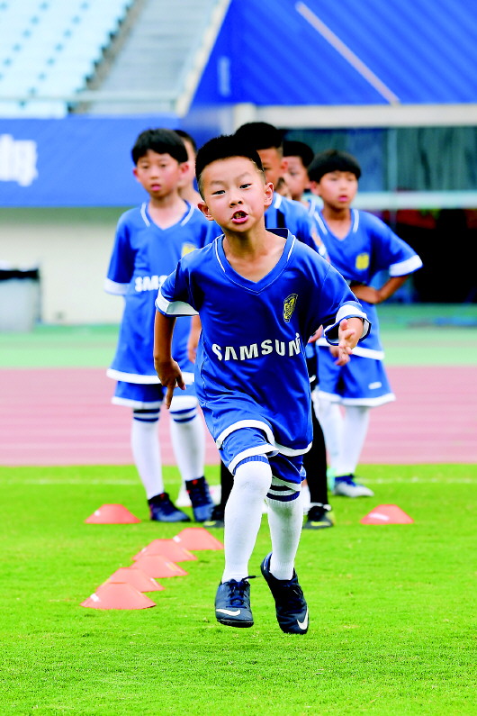 圖3:南京小球員學習足球基礎技能。新華社記者李博攝