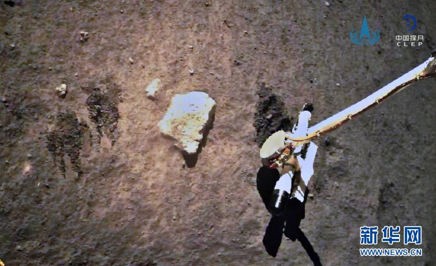 12月2日,嫦娥五號探測器在月球表面自動(dòng)采樣。新華社發(fā)(國家航天局供圖)