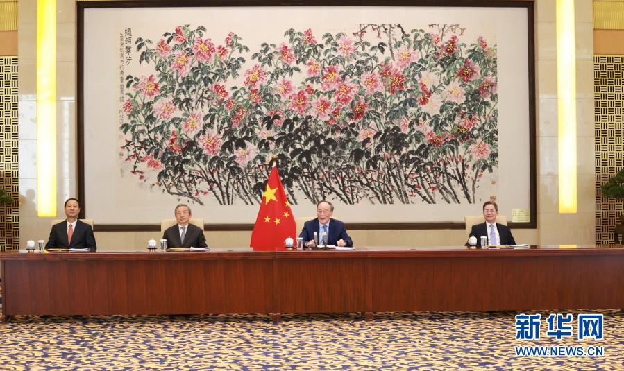 12月4日,國(guó)家副主席王岐山在北京以視頻方式會(huì)見(jiàn)清華大學(xué)經(jīng)濟(jì)管理學(xué)院顧問(wèn)委員會(huì)海外委員和中方企業(yè)家委員。 新華社記者 丁林 攝