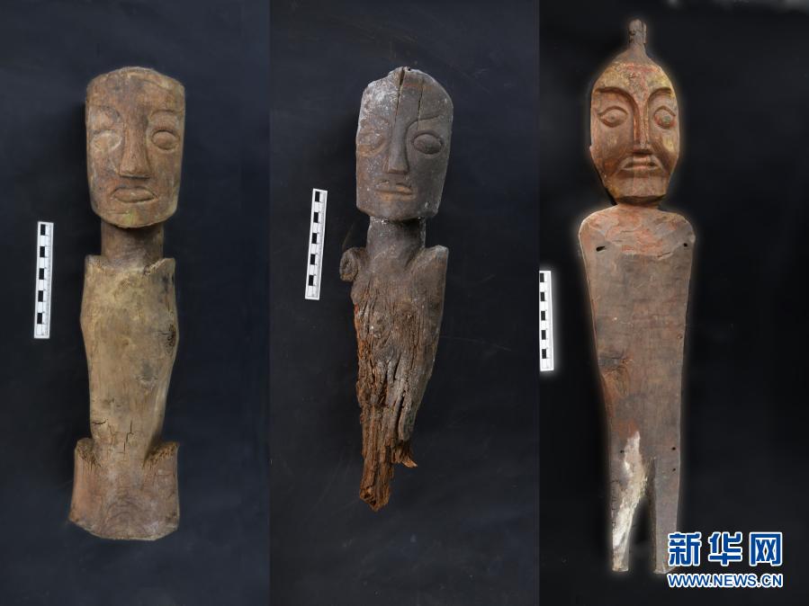 桑達隆果墓地出土的木俑(資料照片)。新華社發