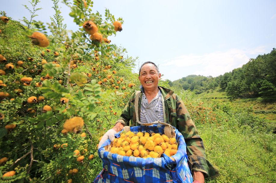????刺梨產業正成為群眾增收致富的好幫手,圖為貴州省黔南州貴定縣昌明鎮火炬村村民喜迎刺梨豐收,臉上掛滿豐收的喜悅。石銀超 攝