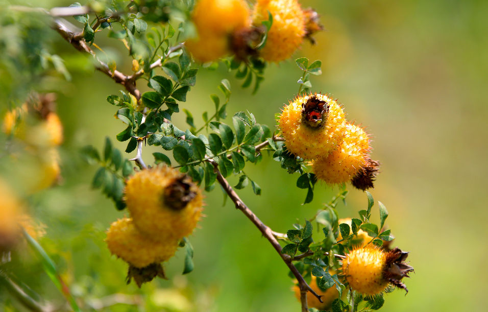 ????金秋時節,在貴州省黔南州貴定縣的刺梨基地里,沉甸甸的刺梨碩果掛滿枝頭。石銀超 攝