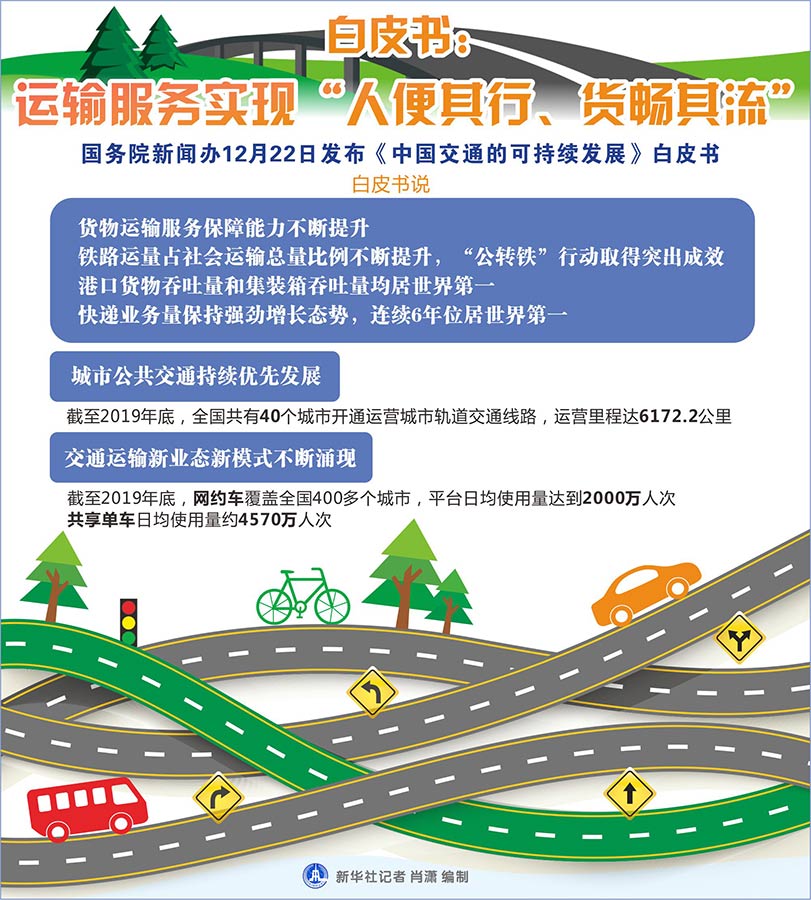 新華社北京12月22日電(記者魏玉坤、周圓)國務院新聞辦22日發布的《中國交通的可持續發展》白皮書介紹,運輸服務實現“人便其行、貨暢其流”,通達性和保障性顯著增強。交通運輸對國家經濟社會發展的支撐顯著增強,促投資、促消費、穩增長作用明顯。