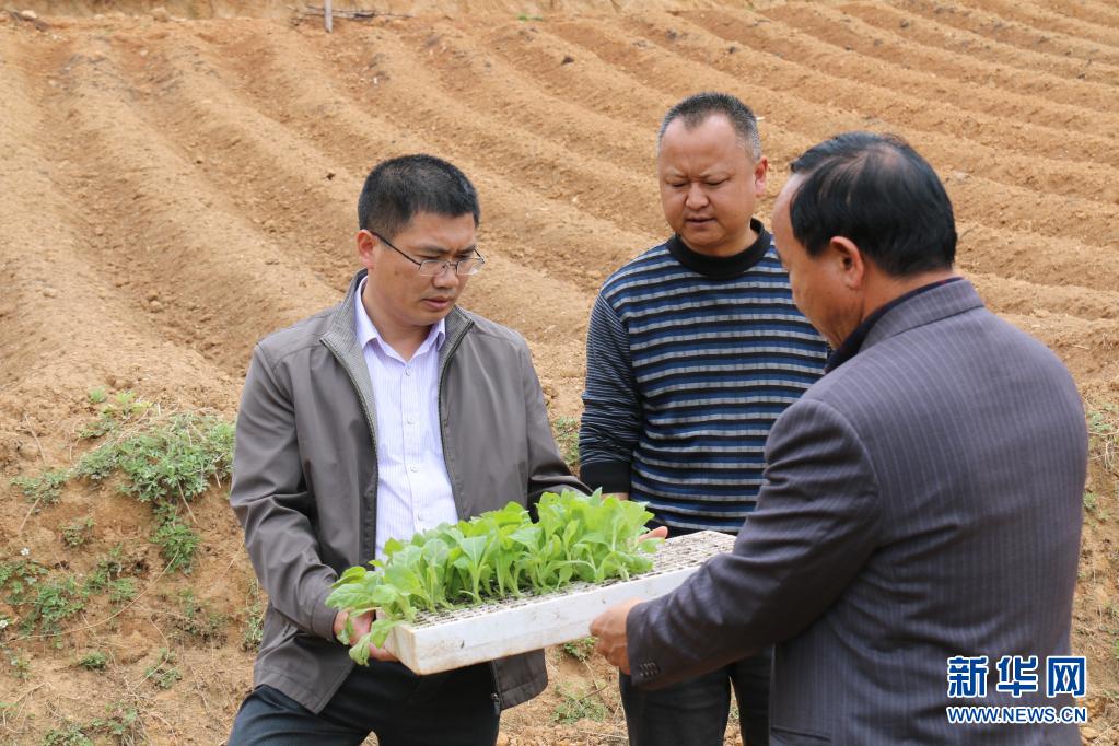 聶金輝(左)在劍川縣彌沙鄉(xiāng)調(diào)研時了解當(dāng)?shù)禺a(chǎn)業(yè)發(fā)展情況(2016年4月28日攝)。新華社發(fā)(劍川縣融媒體中心供圖)